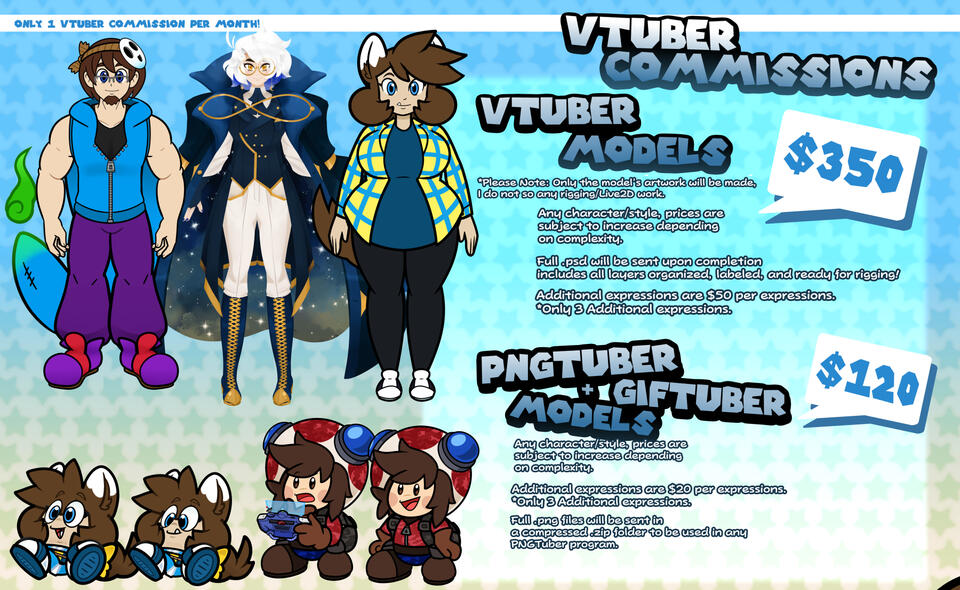 If interested please check my Twitter, Bluesky, or VGen for when I am opened!